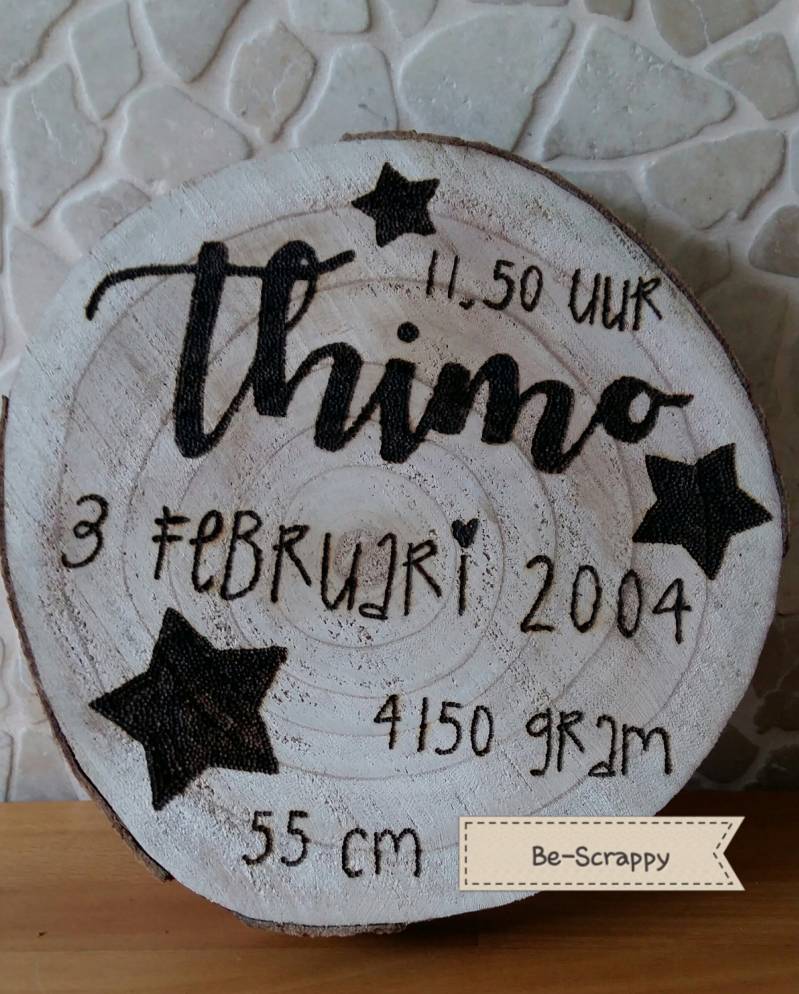 Nr.13 Een geboorteboomstamschijf gebrandletterd