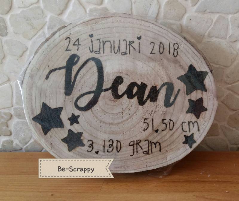 Afgelopen week heb ik een Geboorteboomstamschijf op bestelling mogen maken.