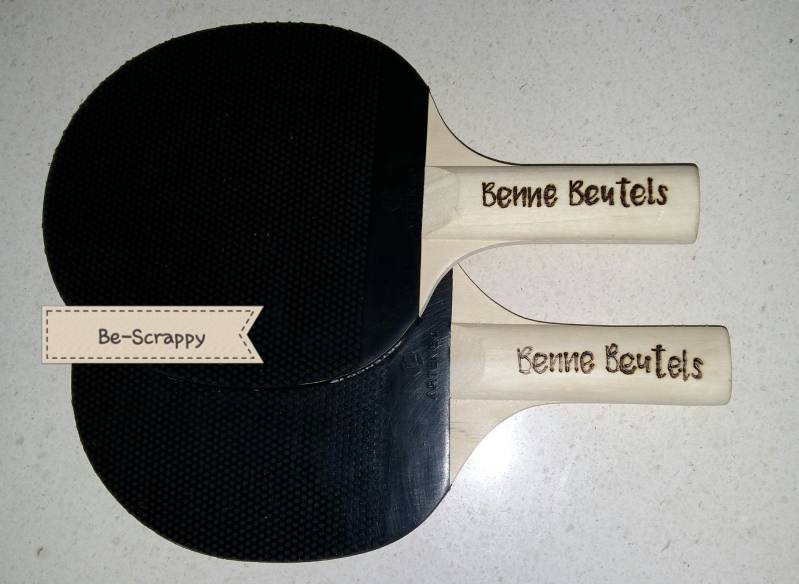 Soms krijg je ook de vraag van iemand om een eigen item te voorzien van een gebrandletterde naam. Dit keer waren het pingpong palletjes.