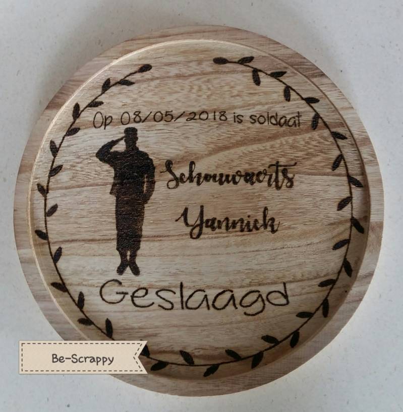 Afgelopen week kreeg ik de vraag om wat te brandletteren voor iemand die geslaagd was als soldaat. Na wat heen en weer gemail werd dit het resultaat.